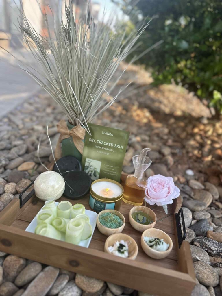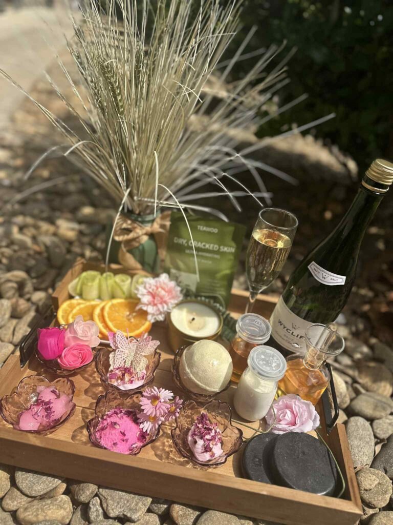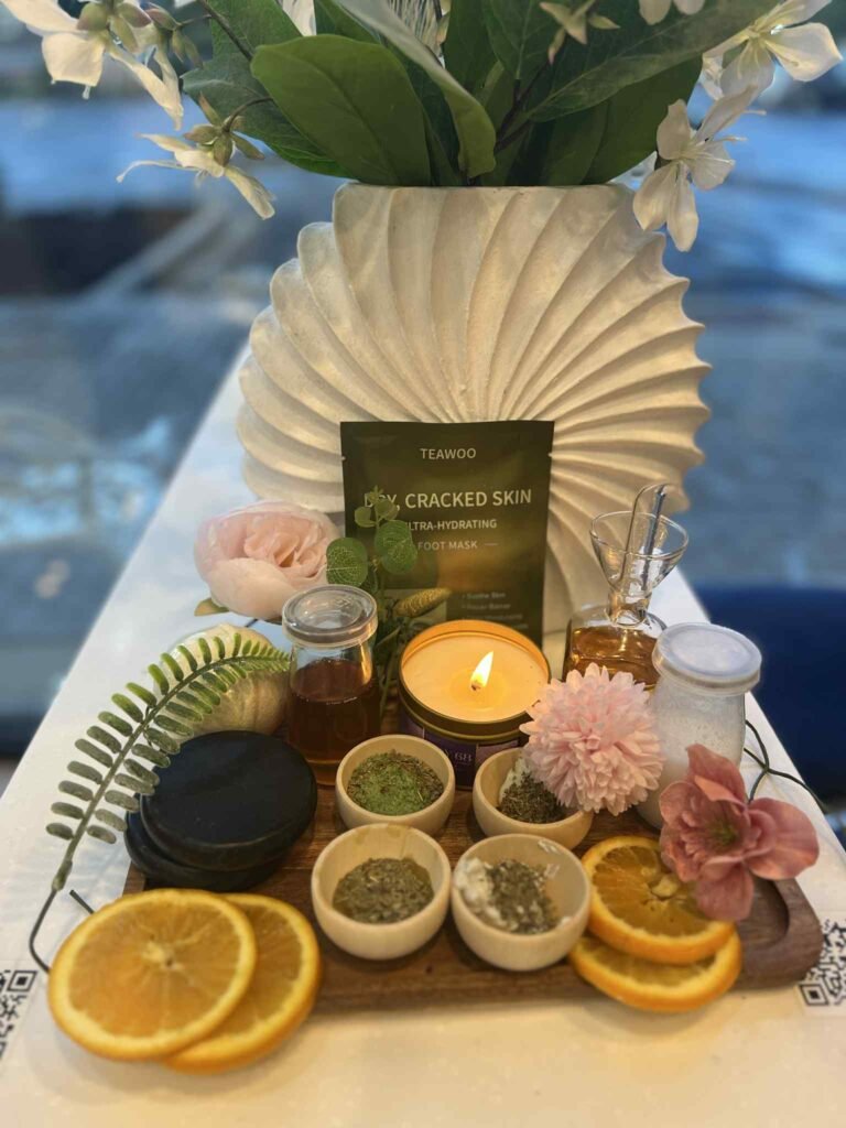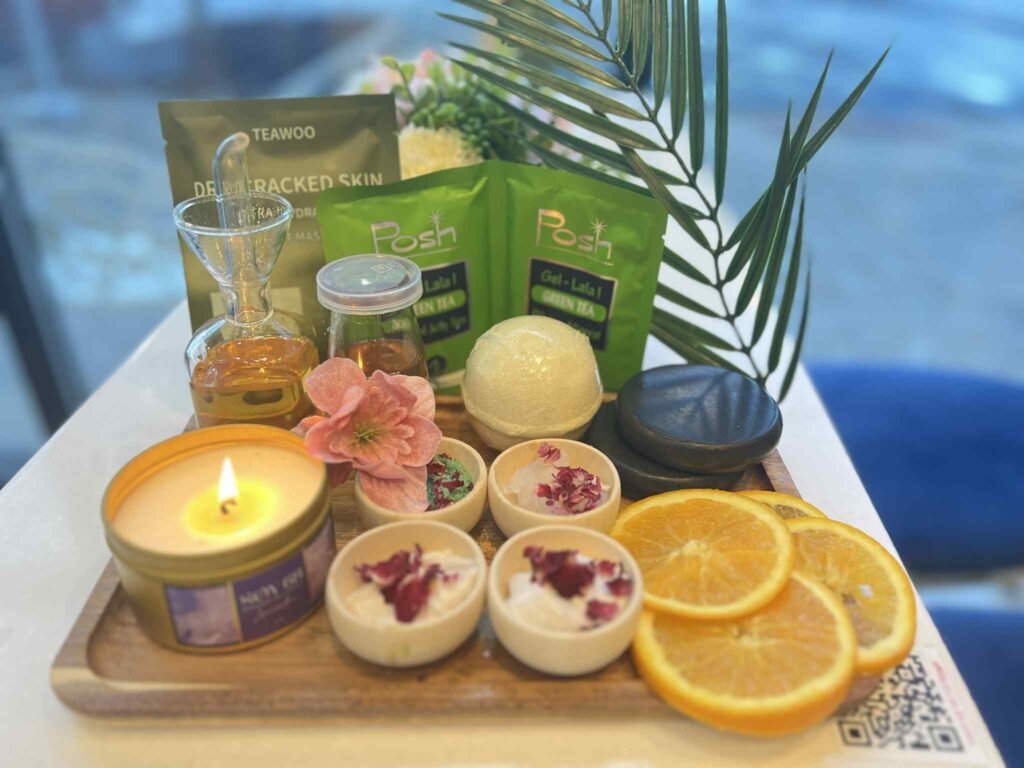 Where luxury meets romance with soft petals and sparkling bliss. This lavish treatment begins with a warm soak infused with champagne bubbles and rose petals to awaken the senses. A gentle exfoliation follows, featuring a milk and honey-sugar scrub and fresh citrus fruit to smooth and renew the skin. Boost circulation with a soothing spa steamer, while collagen socks and a hydrating mask work to heal cracked heels and restore softness and elasticity.. The experience is completed with a rejuvenating hot stone massage using shea butter and vitamin E candle oil, crafted to nourish, firm, and soothe tired legs and feet.